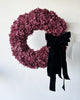 PRESERVED HYDRANGEA CHRISTMAS WREATH WITH BLACK VELVET TRIPLE BOW